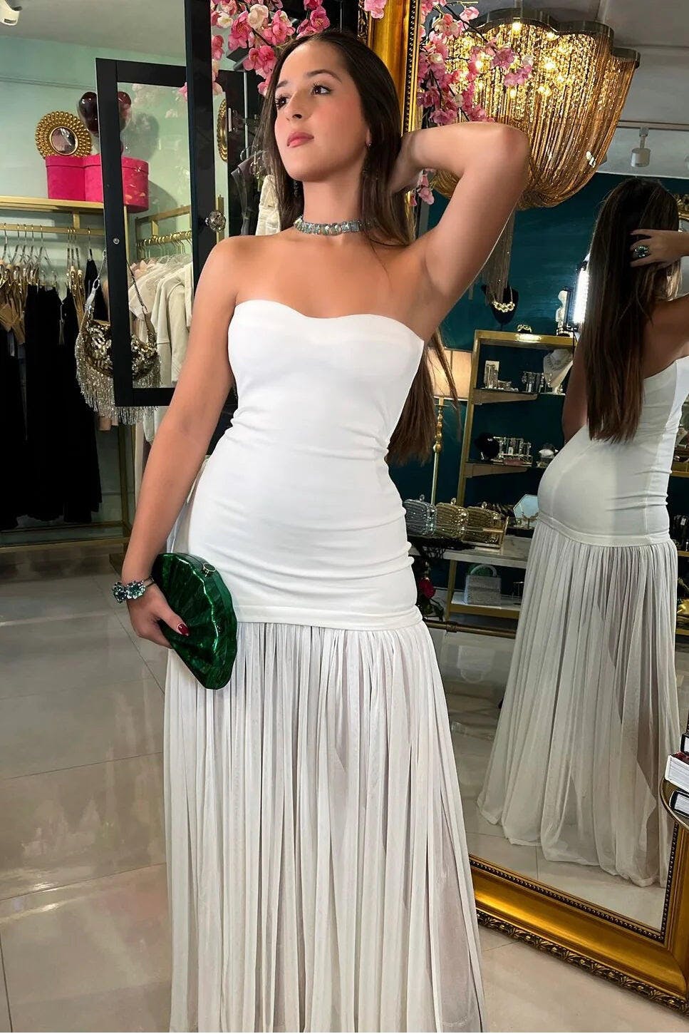 Step into timeless elegance with the Serelinne , a strapless maxi dress designed to captivate with every movement. Its sculpted silhouette and flowing hem create a striking balance of structure and softness, ideal for evening affairs or upscale gatherings.
